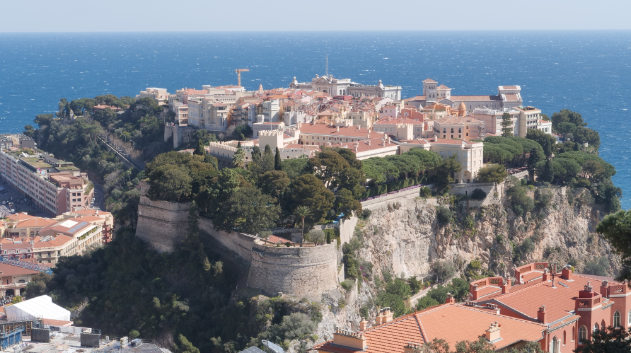 △摩纳哥靠近法意边境,三面被法国包围,南濒地中海。