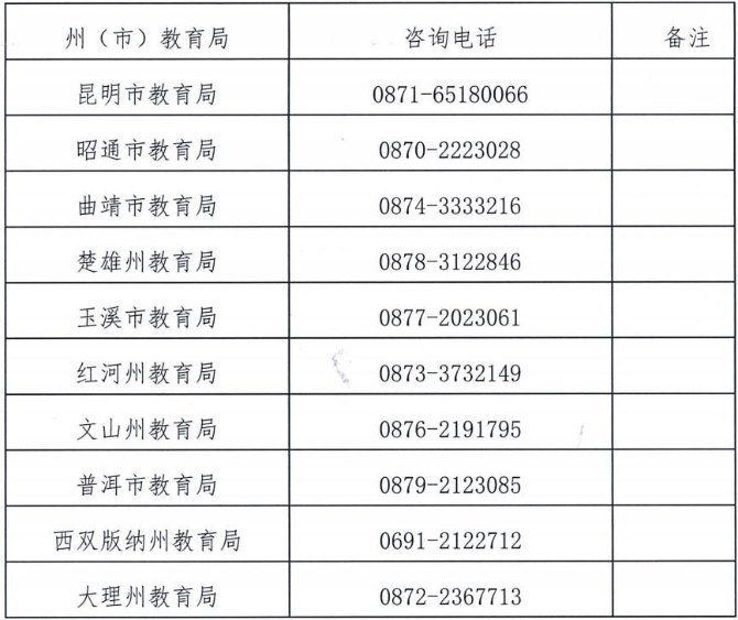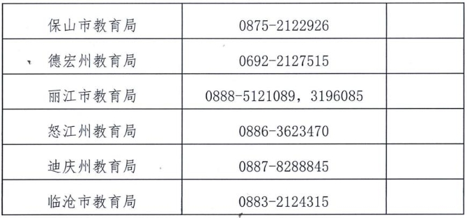 (六)云南省各州(市)认定机构咨询电话