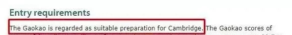 据英国剑桥大学官网信息,剑桥大学在“入学要求”里明确指出,中国高考是剑桥大学认可的考试。
