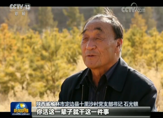 央视网消息(新闻联播):在新中国成立70年的奋进征程当中,涌现出了一批批典型人物,他们在奋斗中昂扬爱国之情、在爱国中激发责任担当。从今天开始,新闻联播推出“爱国情 奋斗者”专栏,聚焦那些为中华民族实现伟大复兴而努力奋斗的中华儿女,展现他们热爱祖国、艰苦奋斗追求美好生活的精神风貌。今天我们先来认识被称为“大漠赤子”的石光银。
