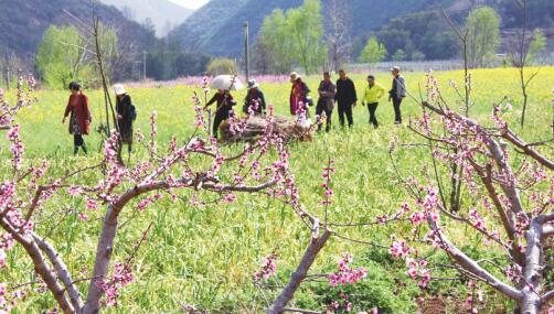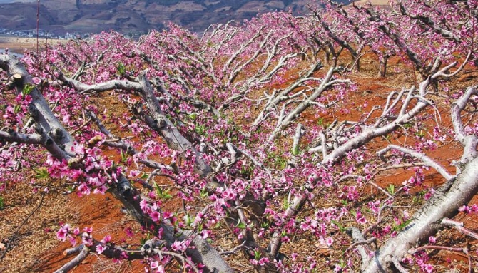 三月,春风煦暖,宾川鸡足山脚下的七千多亩桃花又灿然绽放,如烟如霞,恍若仙境。
