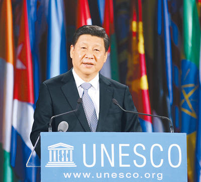 2014年3月27日,国家主席习近平在巴黎联合国教科文组织总部发表重要演讲。新华社记者 姚大伟/摄