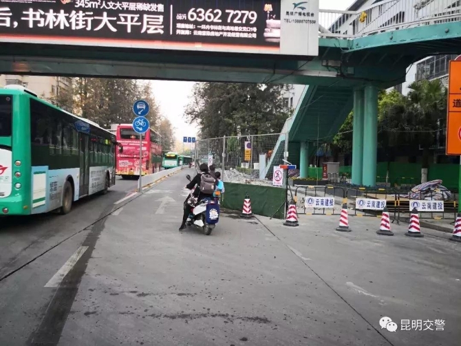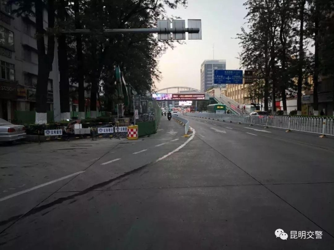 昆明交警提示:期间,行人过街可以从翠湖南路口人行天桥或从昆师路与建设路交叉口通行。请由翠湖南路右转进入东风西路、由白云巷右转进入东风西路的机动车辆及非机动车驾驶人注意避让。请行经上述围挡施工路段的出行市民、机动车辆及非机动车驾驶人注意观察交通标志,安全出行。
