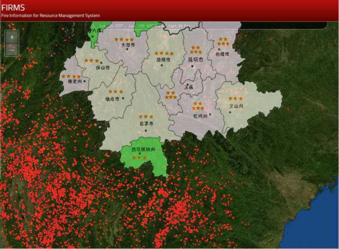 卫星监测显示的火点