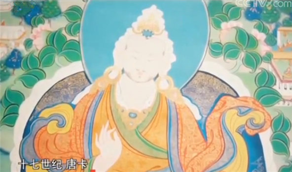 西藏博物馆展览部副主任唐聪丽:唐卡我们都知道它是藏民族的一种传统文化,而且现在已经是被列入了非物质文化遗产。但是早些年这种工艺唐卡,比如说像刺绣、织锦、缂丝这些唐卡,基本都是内地制作。