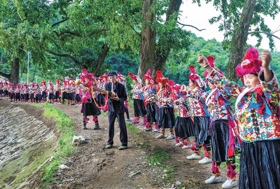 省级葫芦笙舞传承人带领村民跳彝族葫芦笙舞