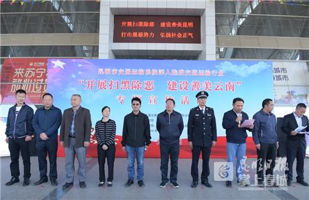 本次现场推进会,以推进运输行业“开展扫黑除恶 建设善美云南”为主题,传达省、市扫黑除恶专项斗争工作精神。昆明南部汽车客运站、出租车企业代表分别作了扫黑除恶表态发言,各参会单位开展扫黑除恶工作现场宣传。