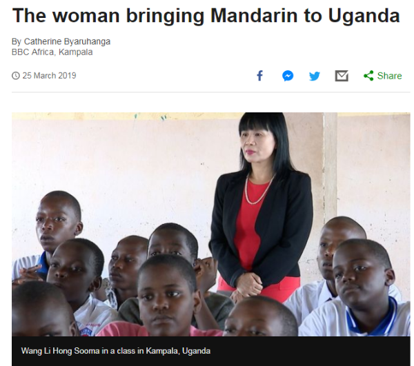 在遥远的非洲乌干达,有一所学校教会了许多当地人说汉语,从而为这些人打开了更广阔的职业前景,也促进了中非两国人民的相互了解和友好交流。