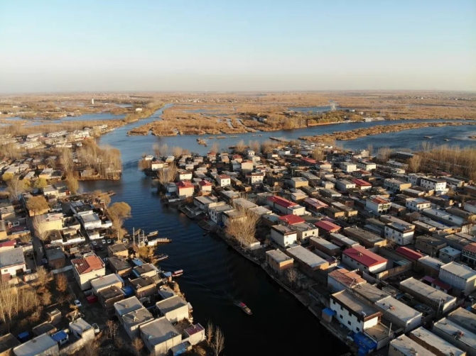 雄安新区白洋淀上的村庄(2018年12月6日无人机拍摄)。新华社记者 邢广利/摄
