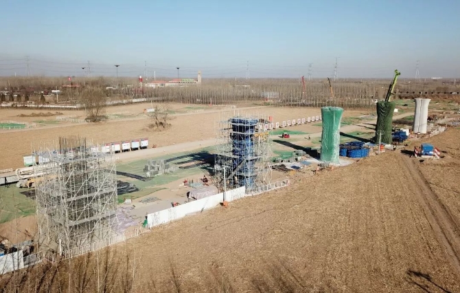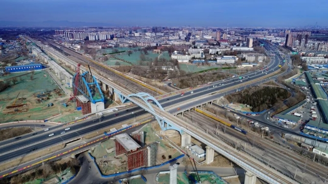 位于北京黄村的建设中的京雄城际铁路(2019年1月5日无人机拍摄)。新华社记者邢广利/摄