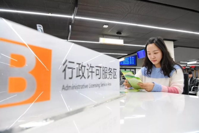 企业人员在雄安新区政务服务中心内翻看服务指南(1月16日摄)。新华社记者 牟宇/摄
