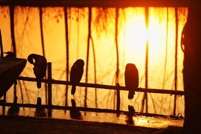 鸬鹚在白洋淀休憩(2018年12月7日摄)。新华社记者 邢广利/摄