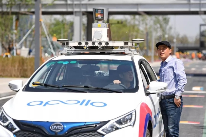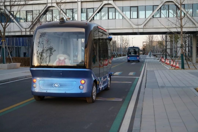 百度无人车在雄安新区市民服务中心内行驶(2018年12月7日摄)。新华社记者 牟宇 摄