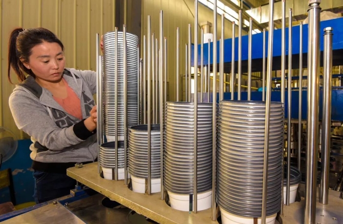 3月27日,在一家从雄安新区外迁到河北省故城县的塑胶包装企业,工人在对塑胶花盆底部进行打孔。新华社记者 李晓果/摄