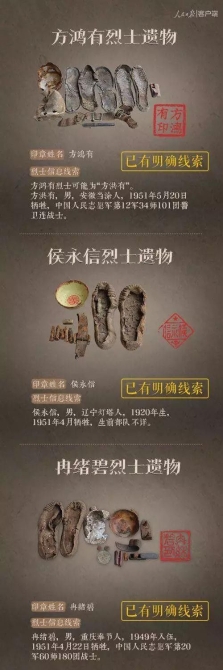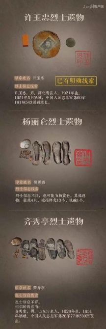 由退役军人事务部和人民日报新媒体等联合发起的“寻找英雄”活动启动以来,各界积极响应。截至3月31日中午,已先后有5位烈士的亲属信息确定被找到。这五位烈士分别是:周少武烈士、许玉忠烈士、侯永信烈士、冉绪碧烈士、方鸿有(方洪有)烈士。由于年代久远,为确保准确无误,线索还需经退役军人事务部门的仔细核实。