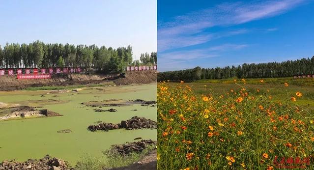 △唐河污水库修复前后(左图为中交一公局供图,右图王京卓/摄)