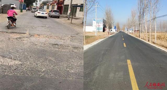 △容贾路翻修前后(左图容城县交通局供图,右图王红/摄)