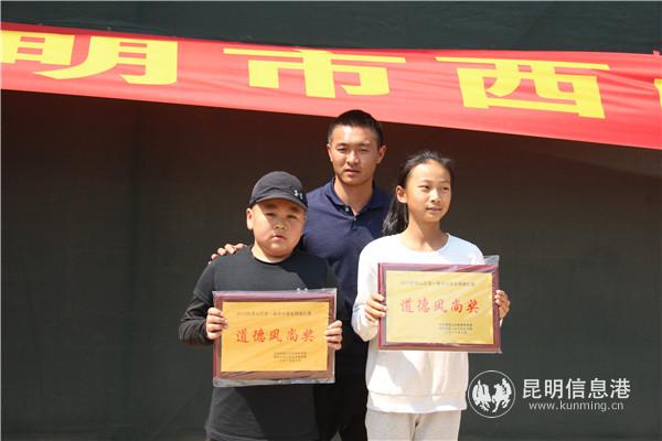 下午两点半,小学组颁奖典礼开始,运动小将们踏着运动员进行曲有序进场。随后评委老师们分别为小学甲组和乙组的获奖选手颁发奖牌和奖状。
