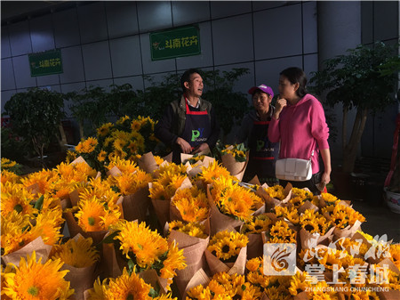 “随着清明节的临近,市场内的菊花价格逐渐上涨,原来黄菊花卖10元一把,现在卖15元一把。并且,前来买菊花的人数明显增多,我今天一早上就卖出了近100把菊花。”斗南花卉市场张女士介绍,因为目前市场上的菊花数量不多,预计随着清明节的到来,市场内菊花价格还将继续上涨。