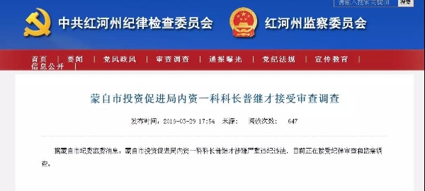 蒙自市投资促进局内资一科科长普继才接受审查调查