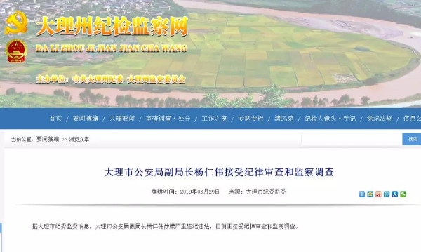 大理市公安局副局长杨仁伟接受纪律审查和监察调查