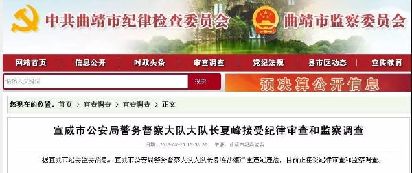 宣威市公安局警务督察大队大队长夏峰接受纪律审查和监察调查