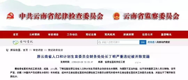 原云南省人口和计划生育委员会财务处处长丁明严重违纪被开除党籍