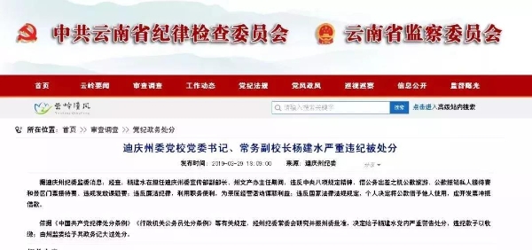 迪庆州委党校党委书记、常务副校长杨建水严重违纪被处分