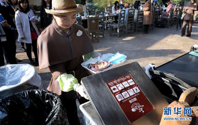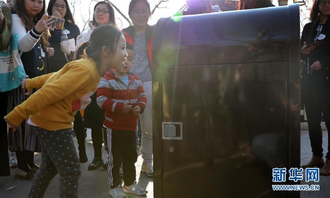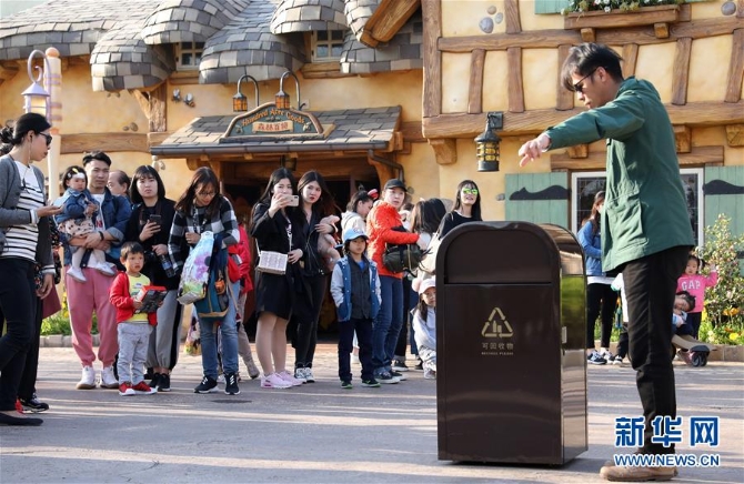 4月1日,具备人机交互功能的移动回收站“小推”正式亮相上海迪士尼乐园。“小推”可以自行移动并向游客介绍垃圾分类知识,吸引众多小朋友参与互动。4月是上海迪士尼的“地球月”,园区将全面倡导废弃物分类理念,提高游客和工作人员的环保意识。 新华社记者方喆/摄