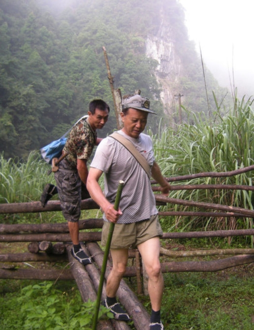 王新法(前)在湖南石门县薛家村考察(2014年摄)。新华社发