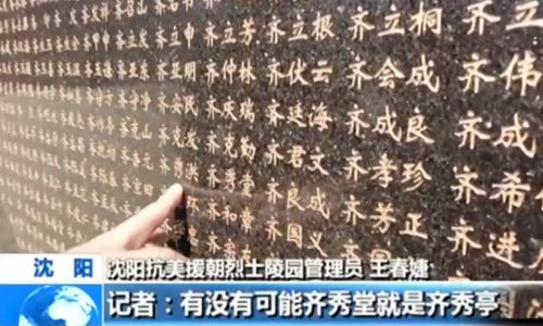 在沈阳抗美援朝烈士陵园里,记者找遍了这面刻着17万多个烈士名字的英烈墙,却始终没有找到齐秀亭的名字。正当记者一筹莫展的时候,我们得到了一个意外的消息,“齐秀亭”在成都,而且还活着。这是真的吗?