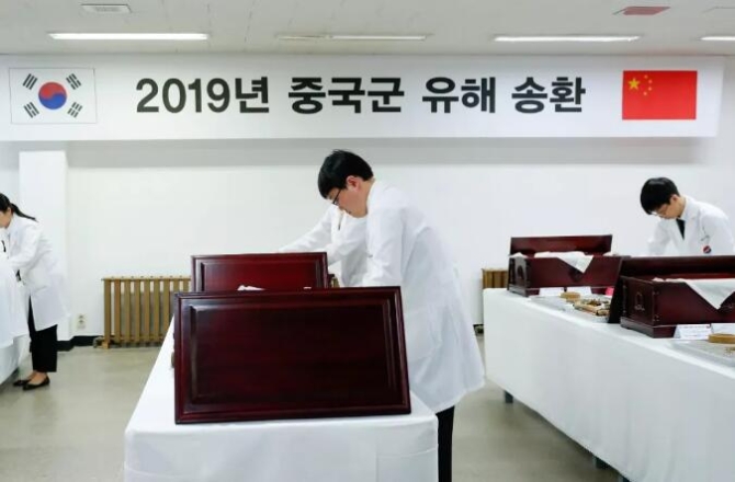 今年1月23日,中韩在北京举行司局级会谈,韩国国防部国际政策官李元翼和中国退役军人事务部褒扬纪念司副司长李桂广均出席,会上商定于4月1日联合举行装殓仪式,4月3日交接遗骸及遗物。双方一致同意有序推进相关事宜,今后韩方将继续向中方移交在韩发掘的中国人民志愿军遗骸。