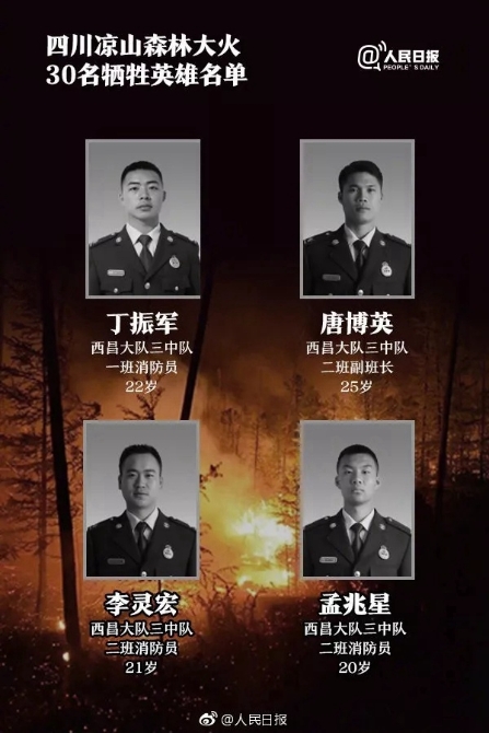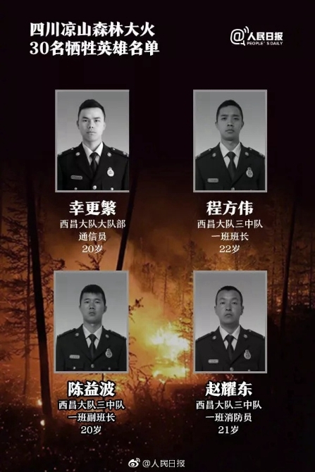 经四川省政府请示,国务院批准,今日凉山州西昌市、木里县将降半旗,向在扑救木里森林火灾中牺牲的30位英雄志哀。