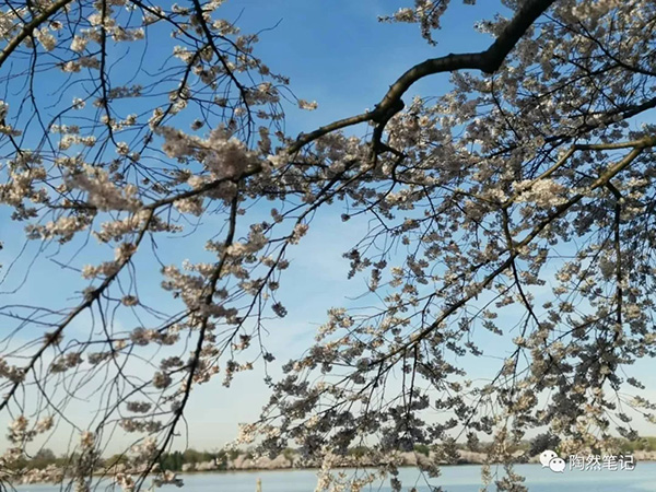 朋友发来的风景照,摄于4月3日华盛顿微信公号“陶然笔记 ” 4月5日报道,3月底4月初,正是樱花开放的时候。