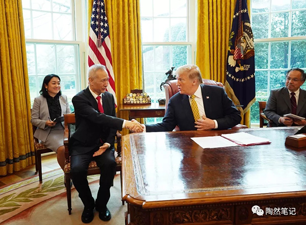 刘鹤副总理的位置,从特朗普的对面,安排到了特朗普的右侧。