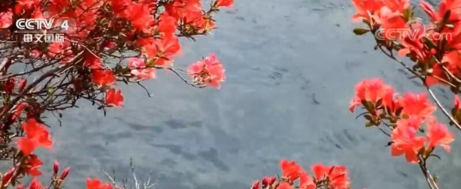 在安徽新安江源头的休宁县流口镇,晴好天气催开了漫山遍野的映山红,盛开如火,像大自然铺就的一条红地毯迎接着远方的来客。