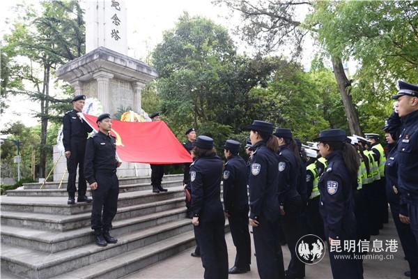昆明信息港讯 记者合宇聪 清明节来临之际,为深切缅怀公安英烈,大力弘扬、传承公安英烈精神,连日来,昆明市各级公安机关组织民警和辅警开展祭扫烈士墓、重温入党誓词和入警誓词等活动,表达敬意、寄托哀思,进一步凝聚警心、鼓舞斗志,激励全市公安民警和辅警全力投入扫黑除恶专项斗争,以优异成绩迎接新中国成立70周年。