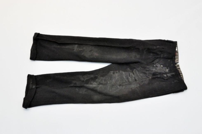 这件遗物是杨靖宇1931-1933年在哈尔滨进行抗日活动时穿的大衫。大衫长120厘米、宽50厘米,灰色毛哔叽料,有几块小补丁。