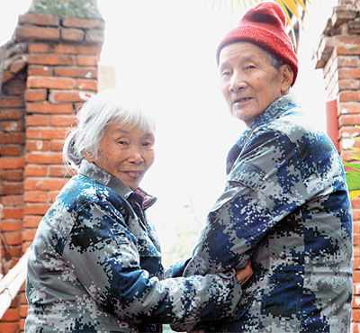 马旭(左)和老伴在家门口。徐晨摄(影像中国)