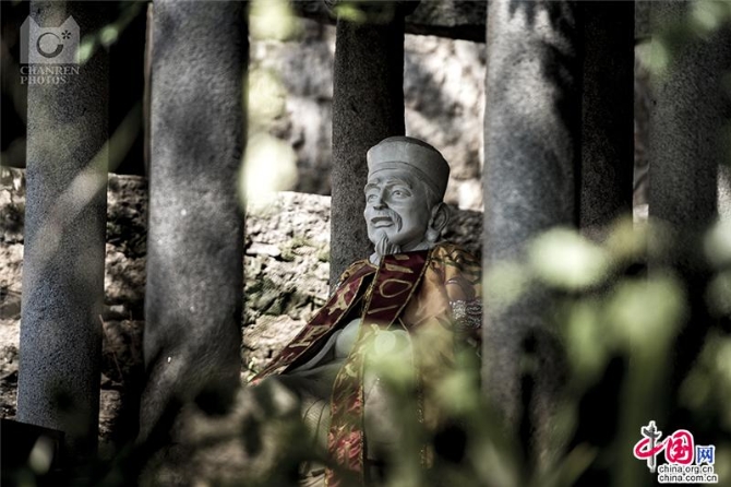 草庵内供奉着摩尼光佛像,这也是世上仅存的一尊摩尼教佛像,在一次关于摩尼教的国际学术会议上,这尊摩尼佛像被选为大会的会徽。佛像身上的颜色都是天然的,它是利用了石头上的天然色彩,进行的俏色巧雕。