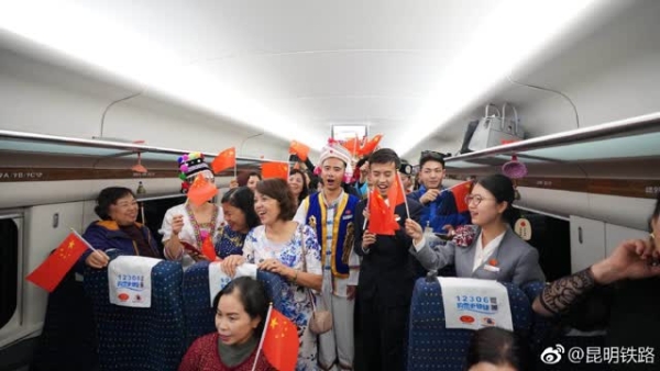 这趟充满民族风情的列车加挂特色餐车和酒吧车。餐车推出云南传统菜品,丽江粑粑、乳扇等滇西名小吃,以及特色快餐。酒吧车则为旅客提供一处谈心交友、休闲放松的温馨环境。