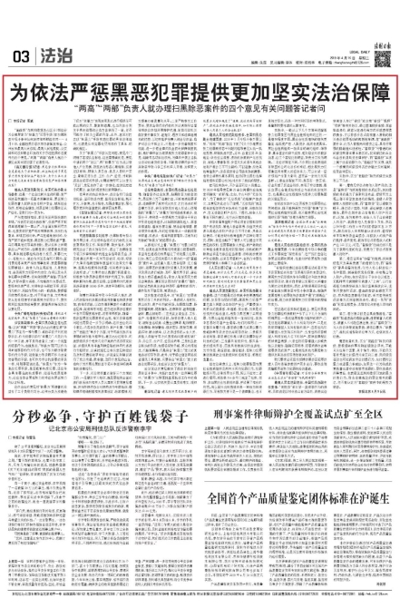 应该说这次意见解决了前段时间在扫黑除恶专项斗争中,包括打击其他一些刑事犯罪中,“软暴力”长期困扰基层执法工作中的难题。下一步,公安机关要认真贯彻落实、组织实施。