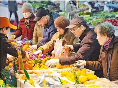 市民在南京一家农贸市场购买水果。苏阳摄(影像中国)
