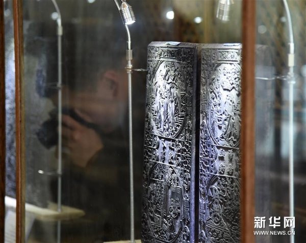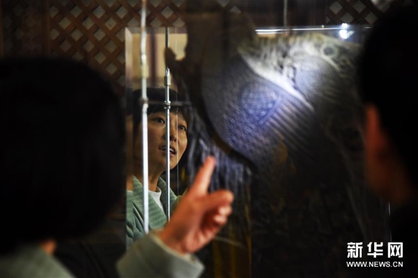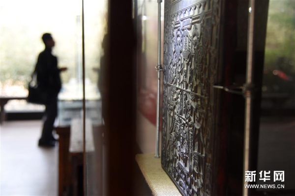 4月10日,参观者在山东艺术学院年画艺术研究中心的研究基地——山东艺术学院年画雕版博物馆里参观。 新华社记者 王凯 摄