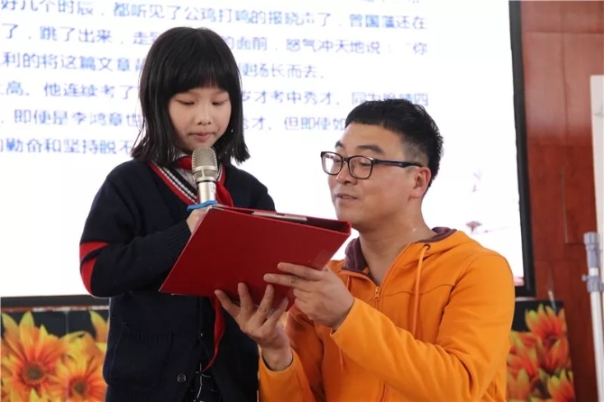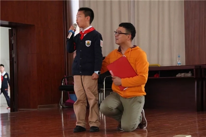 为了加深同学们的印象,在石头哥哥的邀请下,同学们阐述自己聆听诵读的心得,更纷纷走上台前,进行分段朗诵。