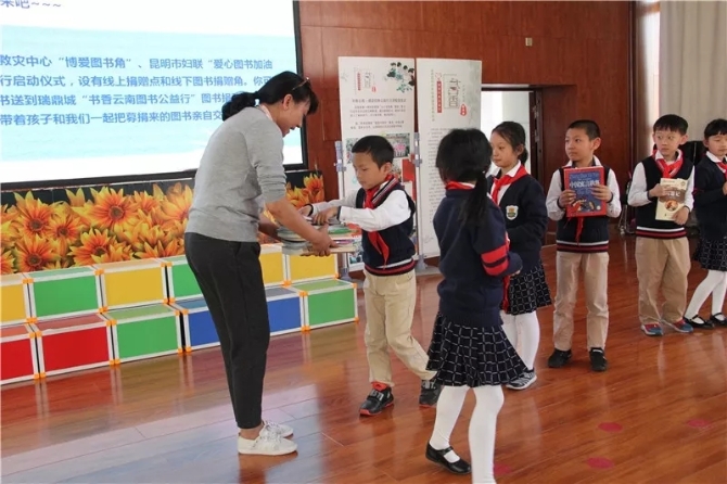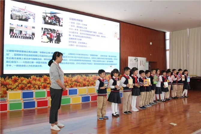 由云南儿童网“书香彩云南·诵读经典公益行”,云南省红十字备灾救灾中心“博爱图书角”、昆明市妇联“爱心图书加油站”,昆明新华书店连锁有限公司盘龙分公司联合组建了公益捐书联盟。