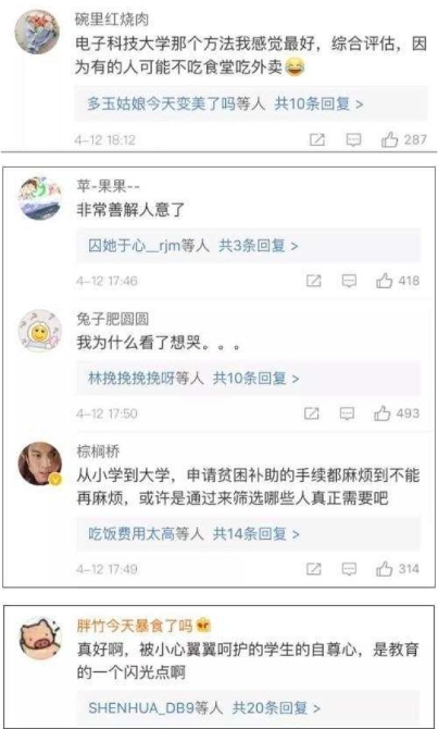 有类似举动的学校还有很多很多,每个学校的方法也许都不一样,但是有一点是共通的,整个过程,不用孩子申请,钱是偷偷打到孩子卡里,只有学校和孩子知道。
