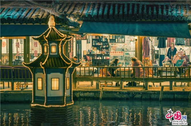 周庄的夜自带沉稳的底色,色河水流动的方向,把脚步带离食烟火,南湖胜境,古刹禅声,伴随着摇曳的薄光,点点禅心,悠扬在清幽思空的朦胧夜色。