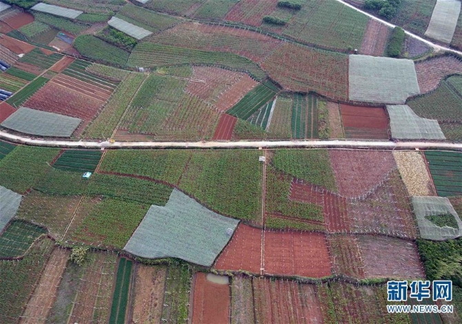 这是4月8日无人机拍摄的云南弥勒新哨镇路体村连片葡萄果园。新华社 记者杨宗友摄