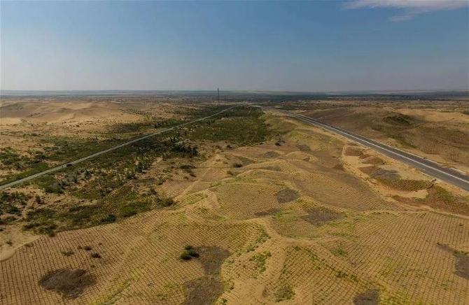 1997年6月16日,在杭锦旗政府以及亿利集团等多方筹措下,库布其穿沙公路动工。1000多人组成的筑路大军,在13万杭锦旗父老乡亲的集体支援下,分三路开进沙漠,一米一米地将这条生命线向外延伸。